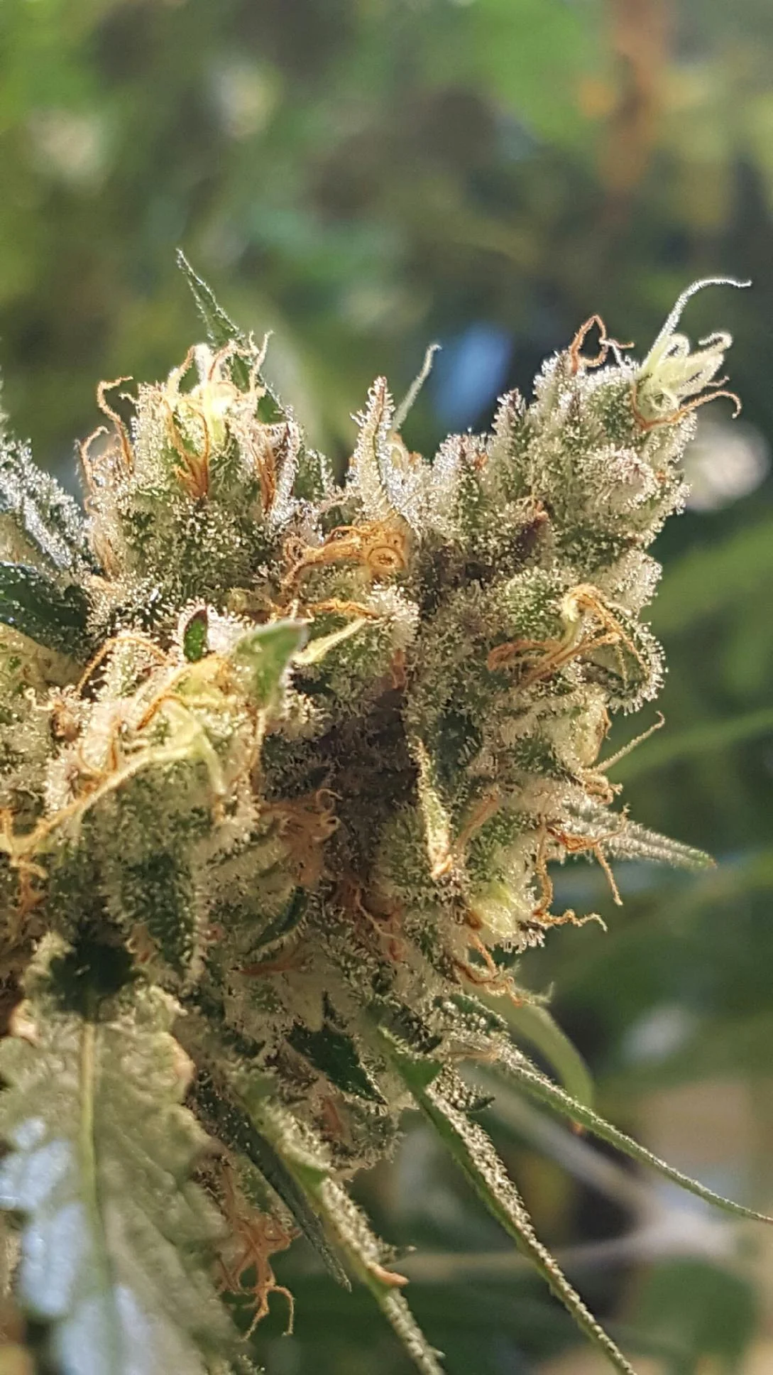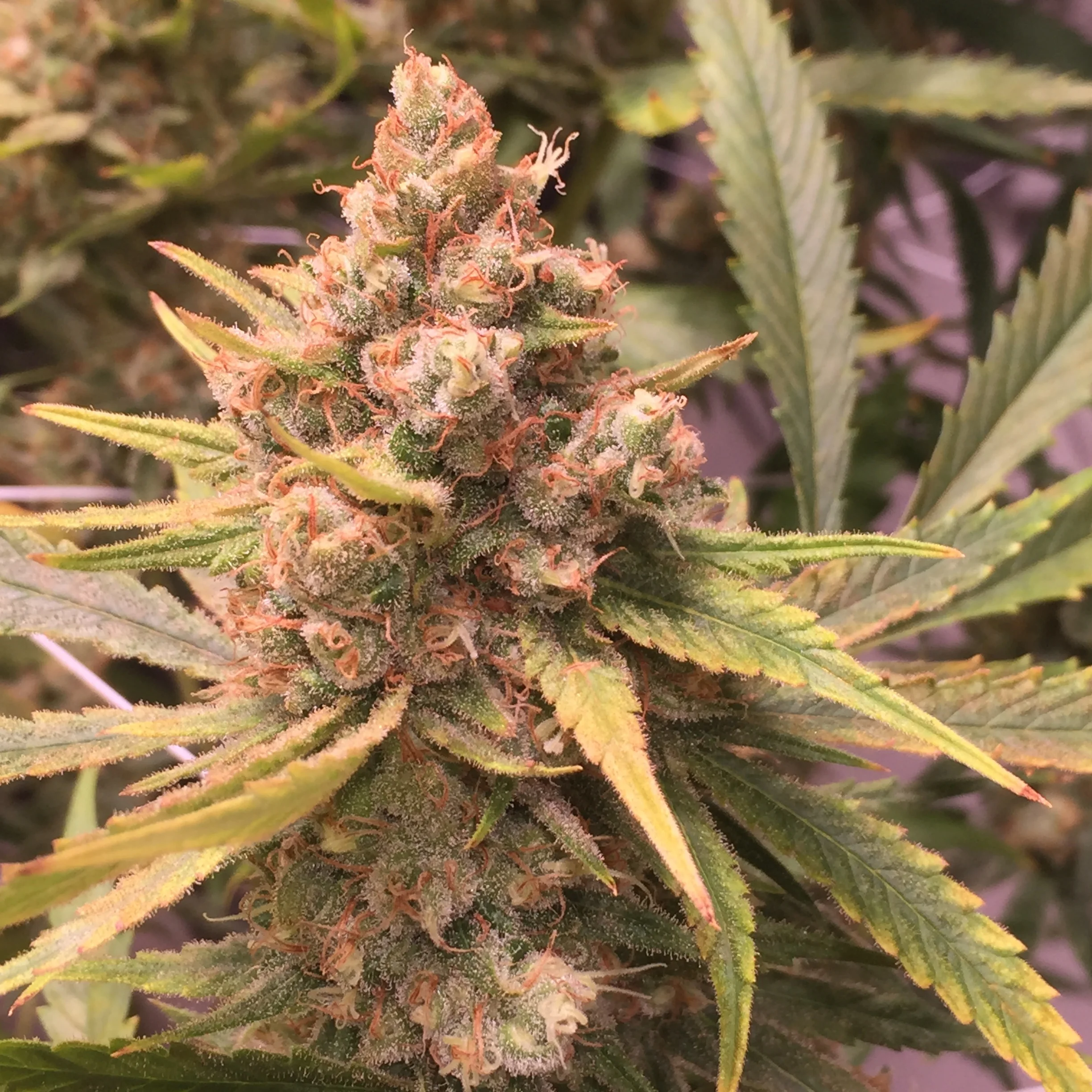 We crossed our Crouching Tiger Hidden Alien with our super-hardy White Rhino pollen. The result is a robust lady with a very sweet smell of grape snow cones, and big, strong buds that are resinous and covered in trichomes. Another cultivar in our South Park line; named in honor of the enterprising young Gerbil King. She is also the proud mama of one of our newest cultivars, Emperor’s Breath.